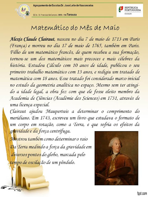 MATEMÁTICO DO MÊS - MAIO/2019 - ALEXIS CLAIRAUT